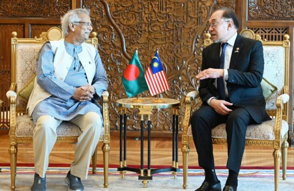 মালয়েশিয়ার রাজধানী কুয়ালালামপুরে দেশটির প্রধানমন্ত্রী আনোয়ার ইব্রাহিমের সঙ্গে দ্বিপক্ষীয় বৈঠক করেছেন অন্তর্বর্তীকালীন সরকারের প্রধান উপদেষ্টা ড. মুহাম্মদ ইউনূস। মঙ্গলবার (১২ আগস্ট) সফরের দ্বিতীয় দিনে পুত্রজায়ায় প্রধানমন্ত্রী কার্যালয়ে পৌঁছালে মালয়েশিয়ার প্রধানমন্ত্রী