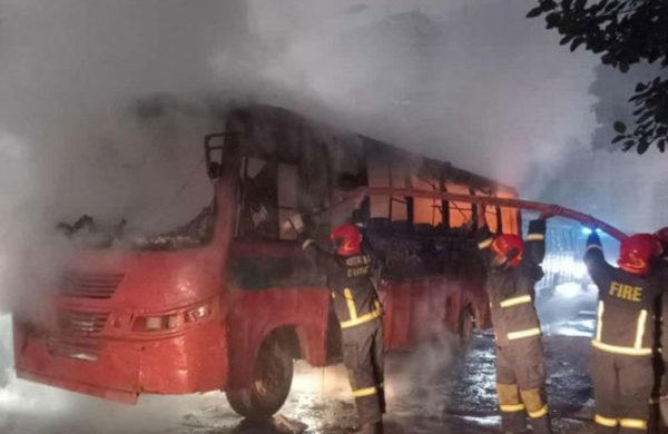 শাহজাদপুর ও মেরুল বাড্ডায় দুই বাসে আগুন
