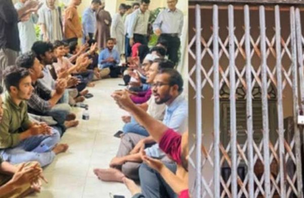 জগন্নাথ বিশ্ববিদ্যালয়ের (জবি) উপাচার্য অধ্যাপক ড. রেজাউল করিমসহ প্রশাসনের ঊর্ধ্বতন কর্মকর্তারা টানা আট ঘণ্টা অবরুদ্ধ থাকার পর মুক্ত হলেও আন্দোলন চালিয়ে যাচ্ছেন শিক্ষার্থীরা। রোববার বিকেল সাড়ে ৩টা থেকে জবি শিক্ষার্থীরা