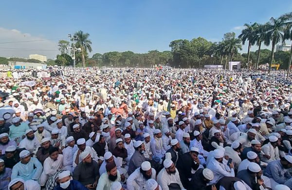 নিজস্ব প্রতিবেদক: ঢাকার সোহরাওয়ার্দী উদ্যানে চলছে ‘আন্তর্জাতিক খতমে নবুওয়ত মহাসম্মেলন’। শনিবার সকাল ৯টায় আনুষ্ঠানিক উদ্বোধনের মাধ্যমে শুরু হওয়া এ ধর্মীয় সমাবেশ চলবে দুপুর ২টা পর্যন্ত। বাংলাদেশসহ পাঁচটি দেশের বিশিষ্ট আলেম-ওলামারা